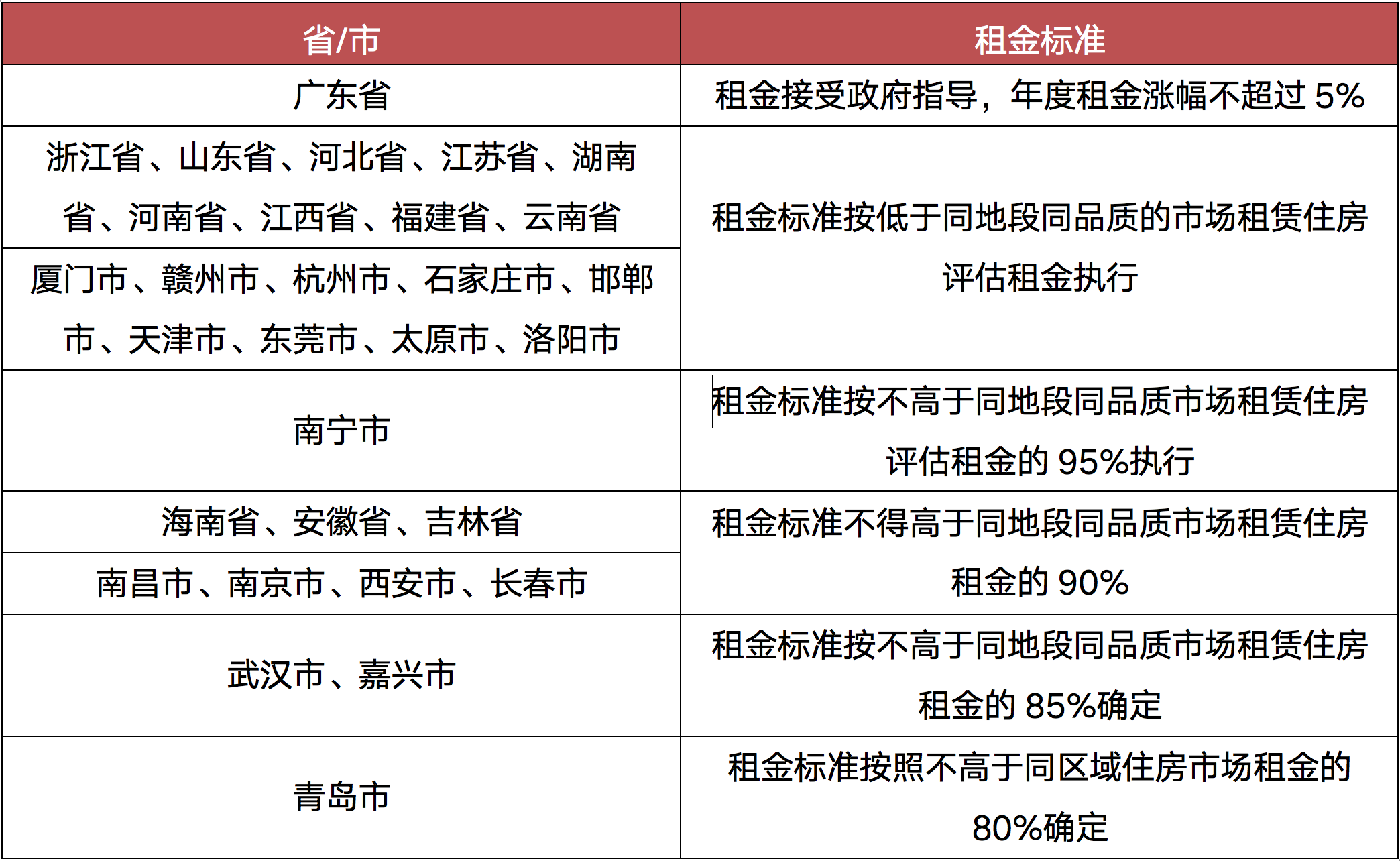 克而瑞租售在整理中发现,大部分城市均明确保租房租金接受政府指导,租金标准按低于同地段同品质市场租赁住房评估租金执行,年度租金涨幅不超过5%。