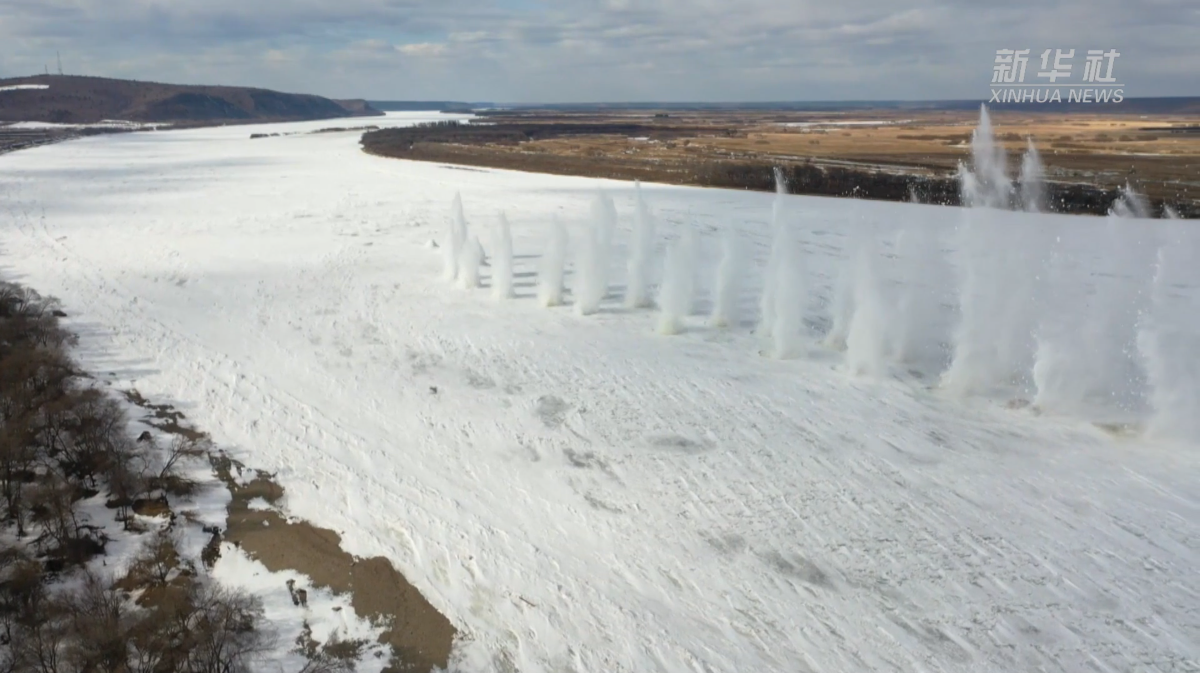 中俄界江黑龙江呼玛段防凌爆破形成“炸冰”景观