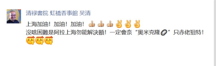 这段时间,上海人太紧张了,打电话第一句闲话就是问候“侬疯(封)特了伐?”我个人相信困难总是会过去的,上海加油!没啥困难是阿拉上海勿能解决额!一定会把“奥米克隆”搿只赤佬狙特!