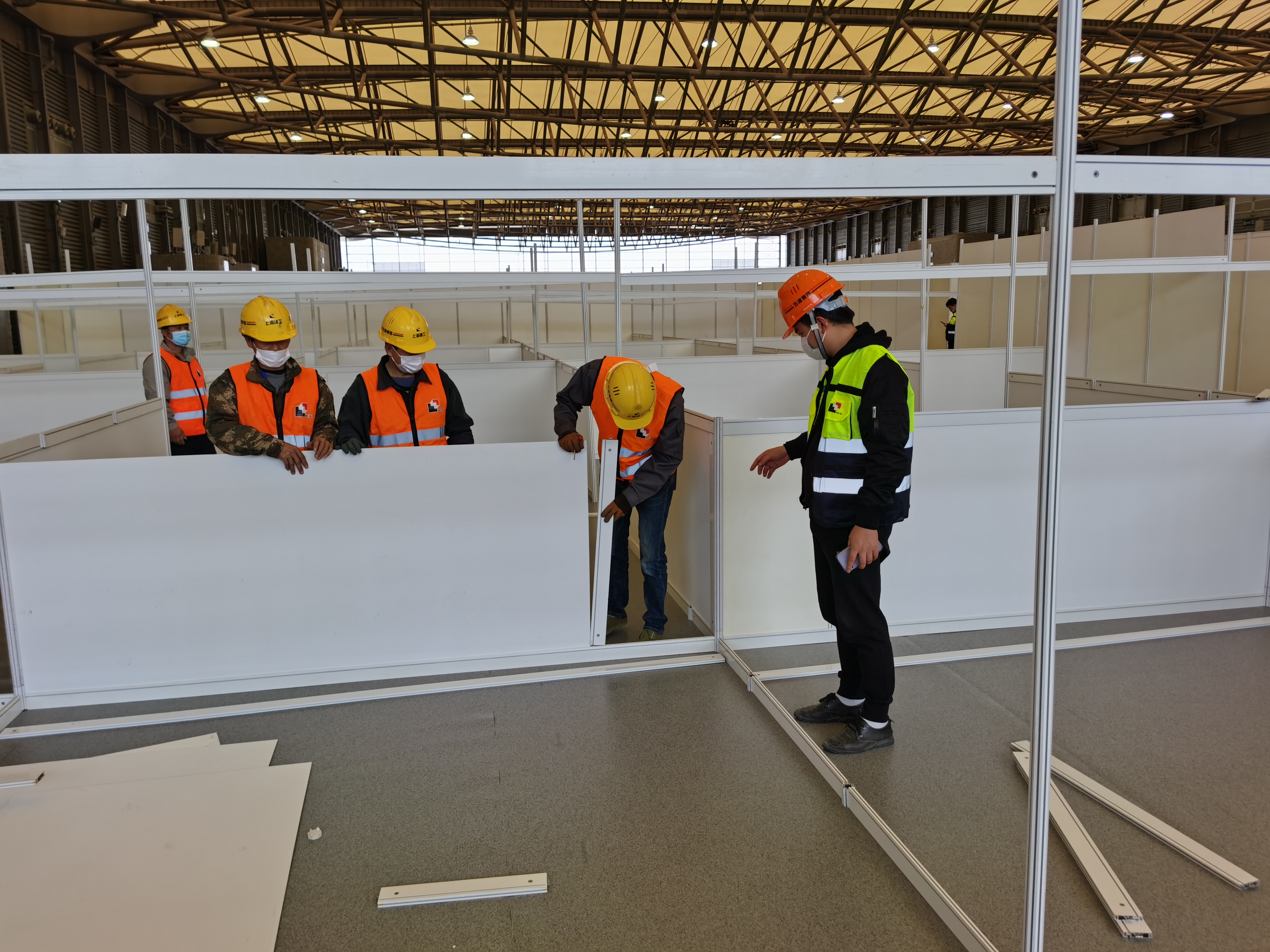 在3月30接到697个床位的改建任务时,距离医疗队入住只剩下58个小时。235名建设者迅速集结,对进货跟踪、卸货分配、楼栋进度、交通组织、劳动力组织、后勤保障等方面同步进行协调统筹,最终仅用55个小时就完成了12栋单体、449套房的改建工作。