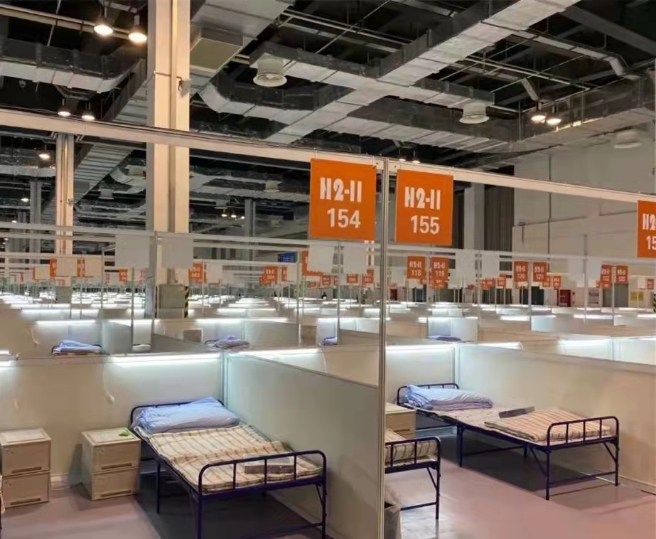 接到建设任务后,一建集团克服疫情防控期间交通管制、人员紧张、物资短缺等多重困难,调集一切可运用的资源和力量,立即派出精兵强将赶往现场。随后,一建集团安装工程公司、装饰事业部也在短时间内竭尽全力组织了175名建设者奔赴项目前线,并确保每一名建设者都持有3天内的核酸证明以及绿色健康码,通过专车点对点护送到世博展览馆方舱医院建设项目现场。一日三餐有专人点对点送餐,确保建设者在围墙内的后勤保障无忧。