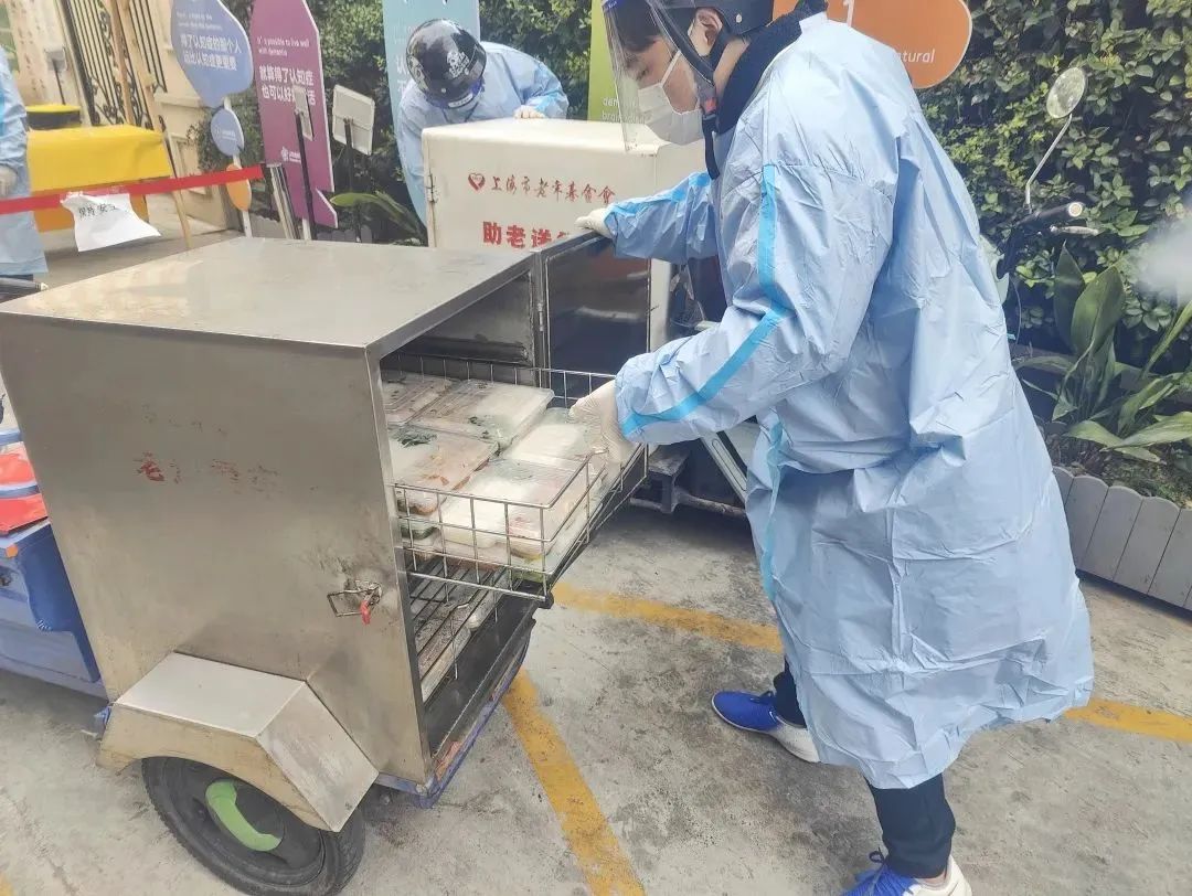 疫情期间,五一居民区联合仙霞新村街道综合为老服务中心做好就餐保障工作,为送餐人员提供口罩、反穿衣、防护帽等防疫物资,保障社区高龄老人们的为老助餐不断线。
