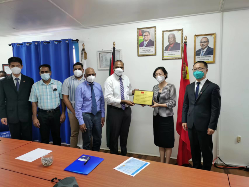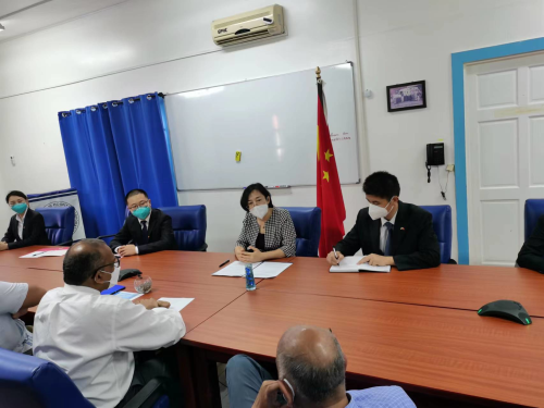 2022年4月14日,驻圭亚那大使郭海燕与圭卫生部长安东尼共同出席我对圭住院医师培训项目开班仪式。圭方培训承办单位负责人、参训医生代表、援圭医疗队员及当地媒体等参加活动。