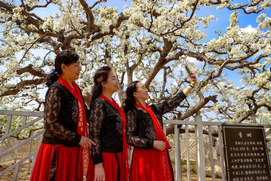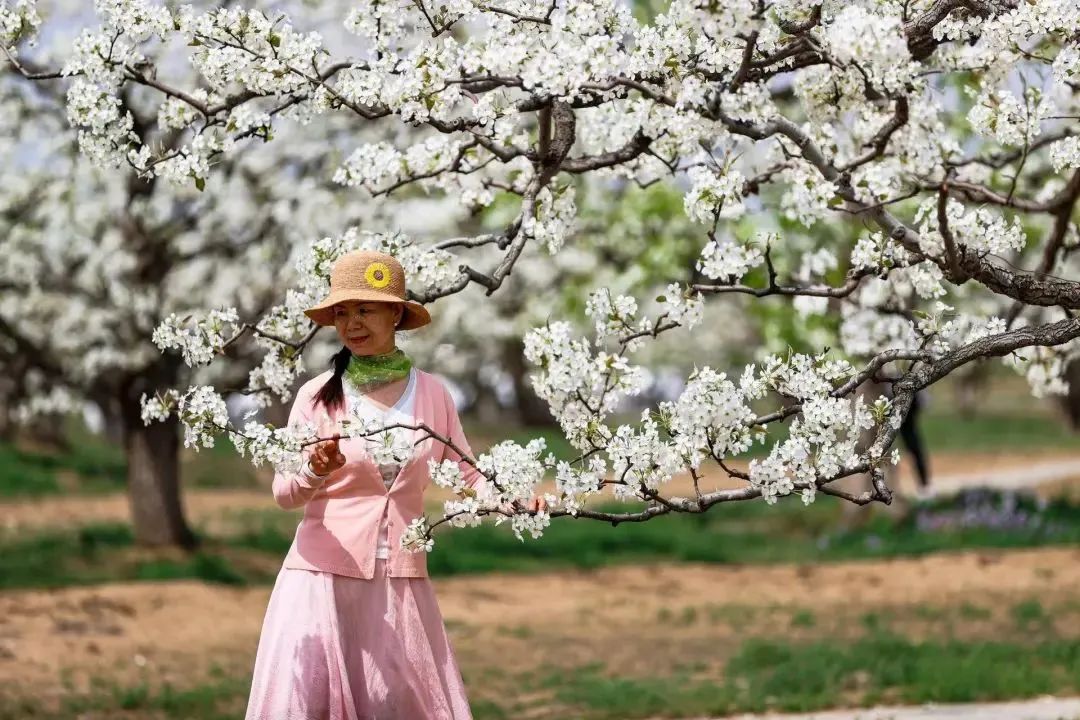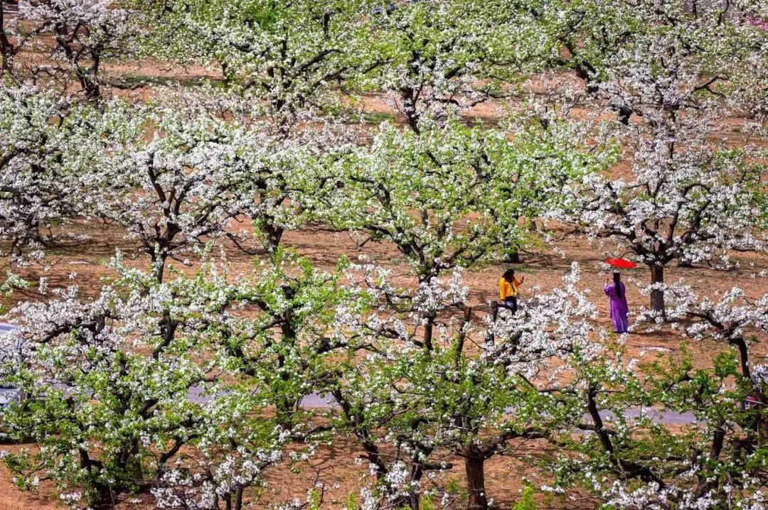 梨花院落溶溶雪,柳絮池塘淡淡风。庞各庄镇百亩梨园,花开如雪的壮观美景,已然成为网红打卡地。