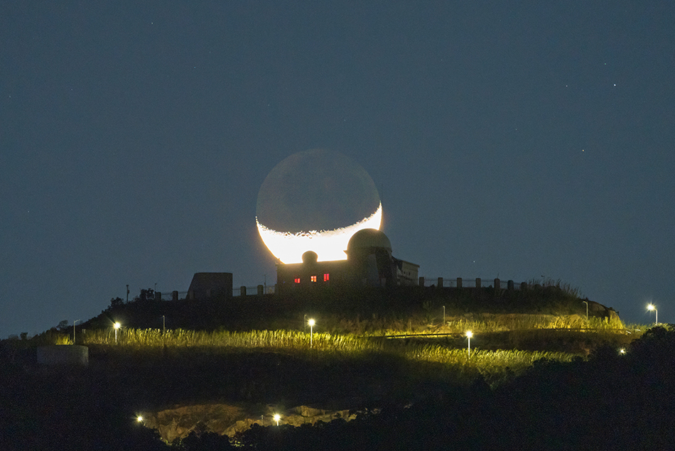2022年3月8日,中山大学大气科学学院教师高斯用超长焦镜头拍摄的月临天琴计划激光测距台站。