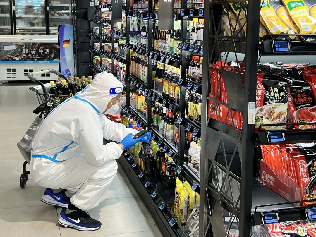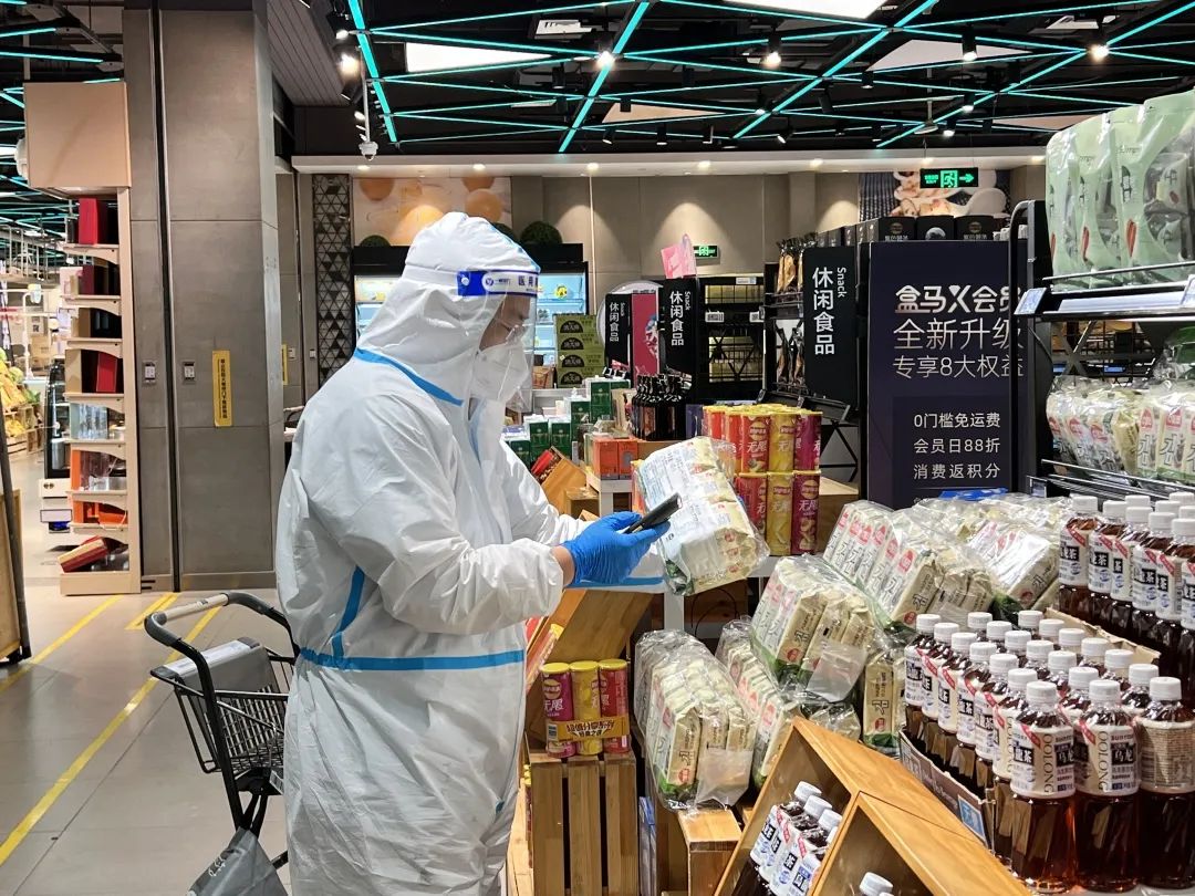 商品验收、补货上架、扫码核对、快速分拣……动作不迟疑、脚步未停歇。记者来到盒马鲜生(宝地店),看到援沪小分队队长杜顺正在有条不紊地工作着。该店目前闭环管理线上接单,大家每天在仓库和门店内高效运转,经常一干就是十多个小时。