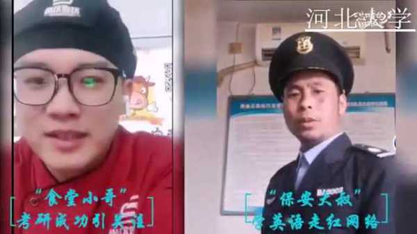 得知自己考研成功被录取,在河北大学七一路校区食堂工作的周柏宇在微信中晒出录取通知,一众大学生食客“盖楼”送祝福,引得校园媒体争相采访;在新冠肺炎疫情防控期间,五四路校区保安卢俊岭在路灯下学英语的照片,被路过大学生拍下发至社交媒体,迅速在互联网上引发了关注点赞。