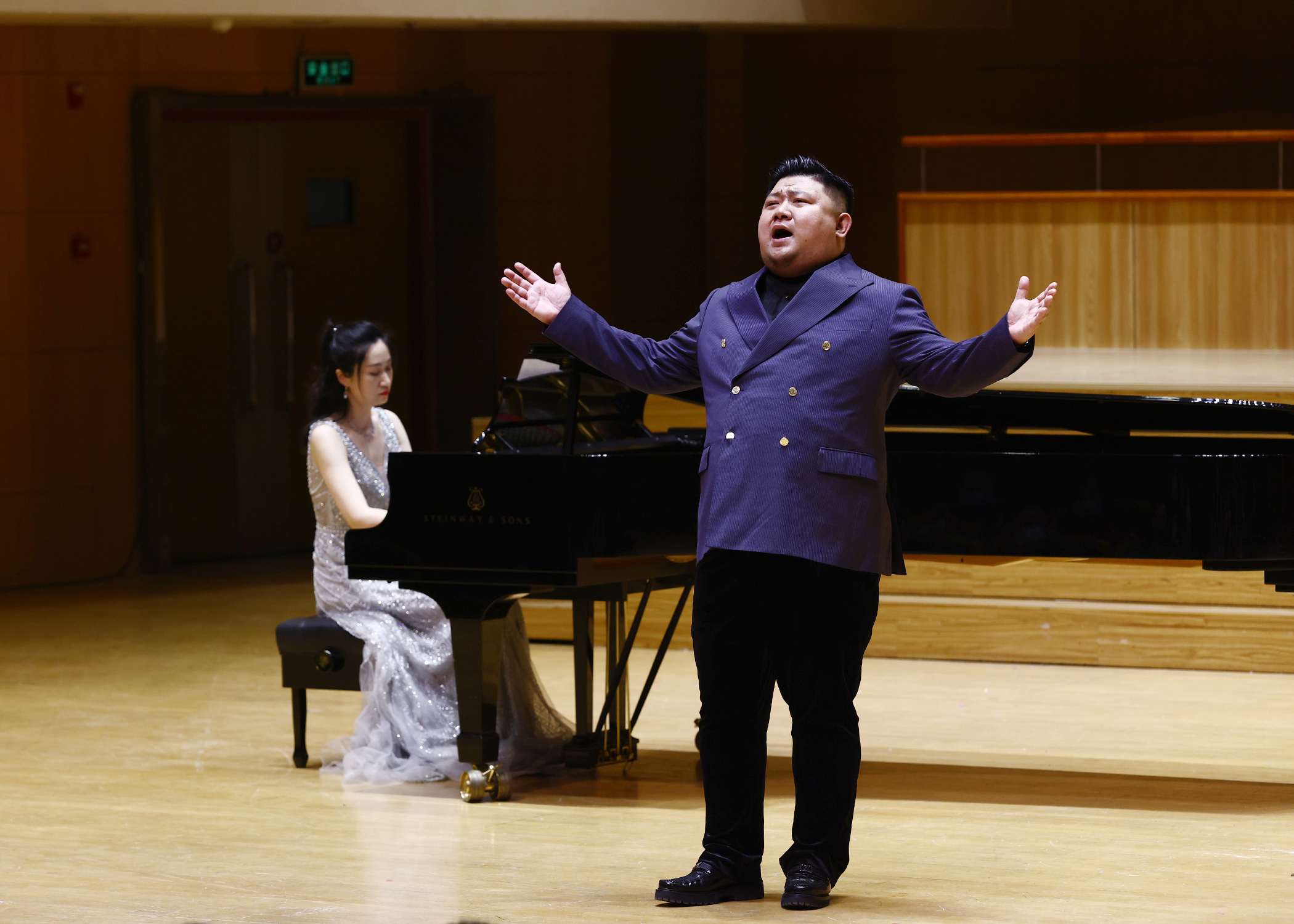 4月24日晚的“那些年我们一起唱过的歌”音乐会,是北京音乐厅管弦乐团出品的第一台“合唱”室内乐音乐会,和此前已经上演的“寻觅天空之城”、“今夜爱无限”共同构成北京音乐厅管弦乐团成立后出品的系列音乐会品牌。本次演出项目经理杨子叶介绍:“北京音乐厅拥有着优秀的声场结构,因此我们的核心定位就是精品室内乐,六重唱恰恰是来自古典音乐室内乐的表现方式。”现场很多观众都曾在抖音、微信视频号上关注金石男声六重唱和他们的作品,但现场效果还是让很多人感慨“真的不一样”。台上台下的互动更是贯穿整场演出,音乐会最后一首曲目《相亲相爱》上演时,观众跟着歌曲的旋律打拍子,把现场的氛围推到高潮。