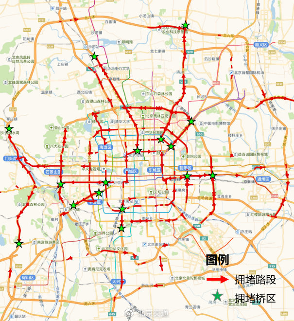 高速公路方面,预计假期六环路、京藏高速、京承高速、京港澳高速、京开高速车流较为集中,假期日均高速出行车辆数均将超过15万辆。结合往年劳动节假期运行情况来看,预计“五一”假期首日上午时段环路及联络线出城方向道路拥堵情况较为突出。其中,西六环王佐桥至军庄桥、京藏高速德胜门桥至定泗桥、京承高速太阳宫桥至高丽营南桥、机场高速三元桥至五元桥、京通快速路四惠桥至远通桥、京开高速玉泉营桥至新发地北桥、京港澳高速小井桥至大瓦窑桥预计将出现拥堵情况。