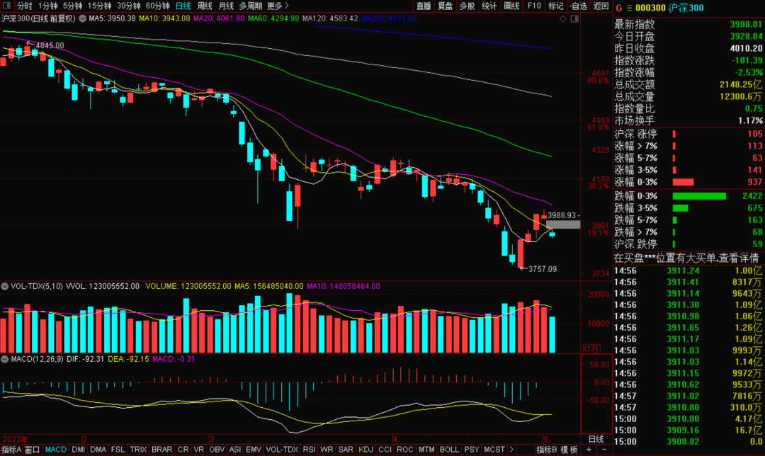 主板和沪深300指数都是四天上涨,今天选择大幅回调。