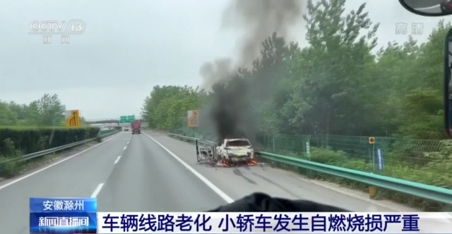 再来看前几天发生在宁洛高速安徽滁州段的这起小轿车自燃事故,大火将整个车身燃烧。为避免引发二次事故,交警在现场设立安全警戒,经过消防员二十几分钟持续出水灭火,火被扑灭,但小轿车烧损严重。据小轿车驾驶人介绍,小轿车已经很长时间没有进行维修保养,当天行驶到这个路段时,发现车辆的引擎盖位置冒出白烟,随后便起了火,大火燃烧迅速,想要扑救已经来不及。消防部门事后调查,起火原因是车辆线路老化故障所致。