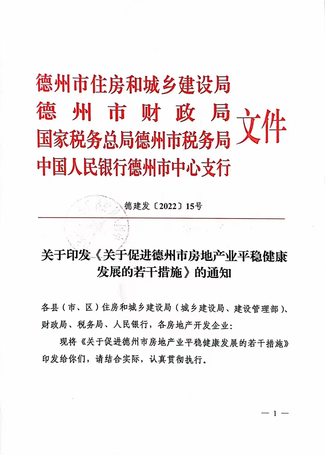 据山东省德州市住房和城乡建设局,5月22日,该局发布《关于促进德州市房地产业平稳健康发展的若干措施》(以下简称“《措施》”),涉及购房补贴、预售资金监管、延缴综合配套费等八条措施。