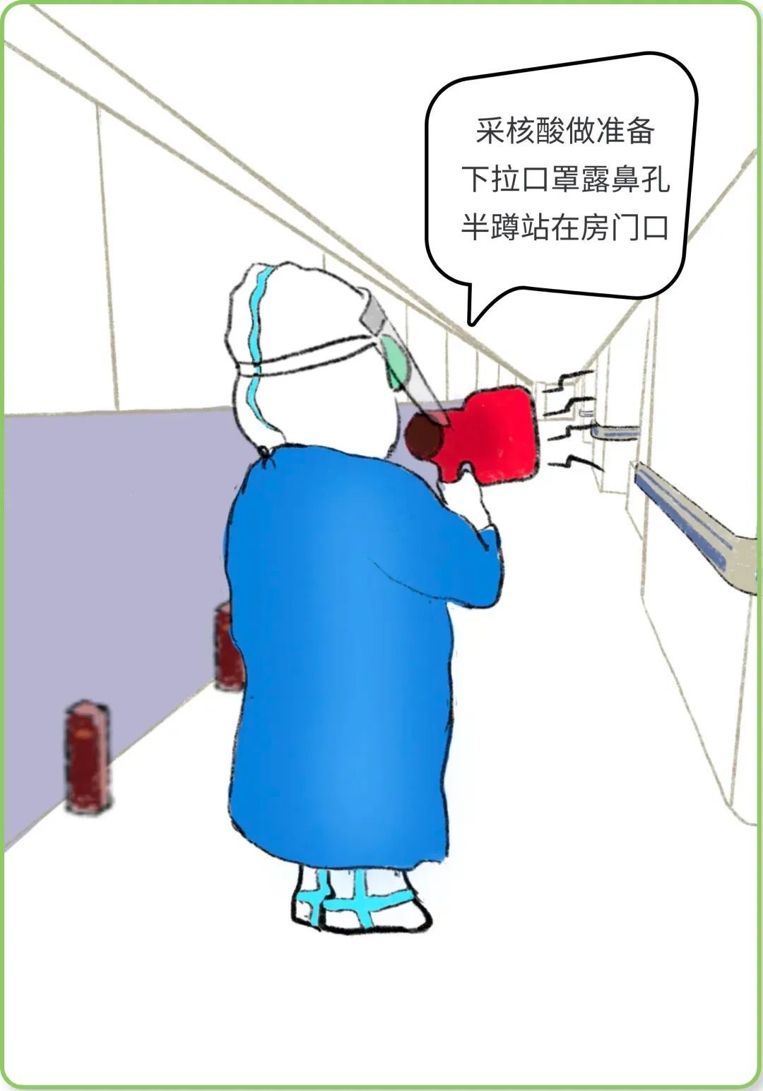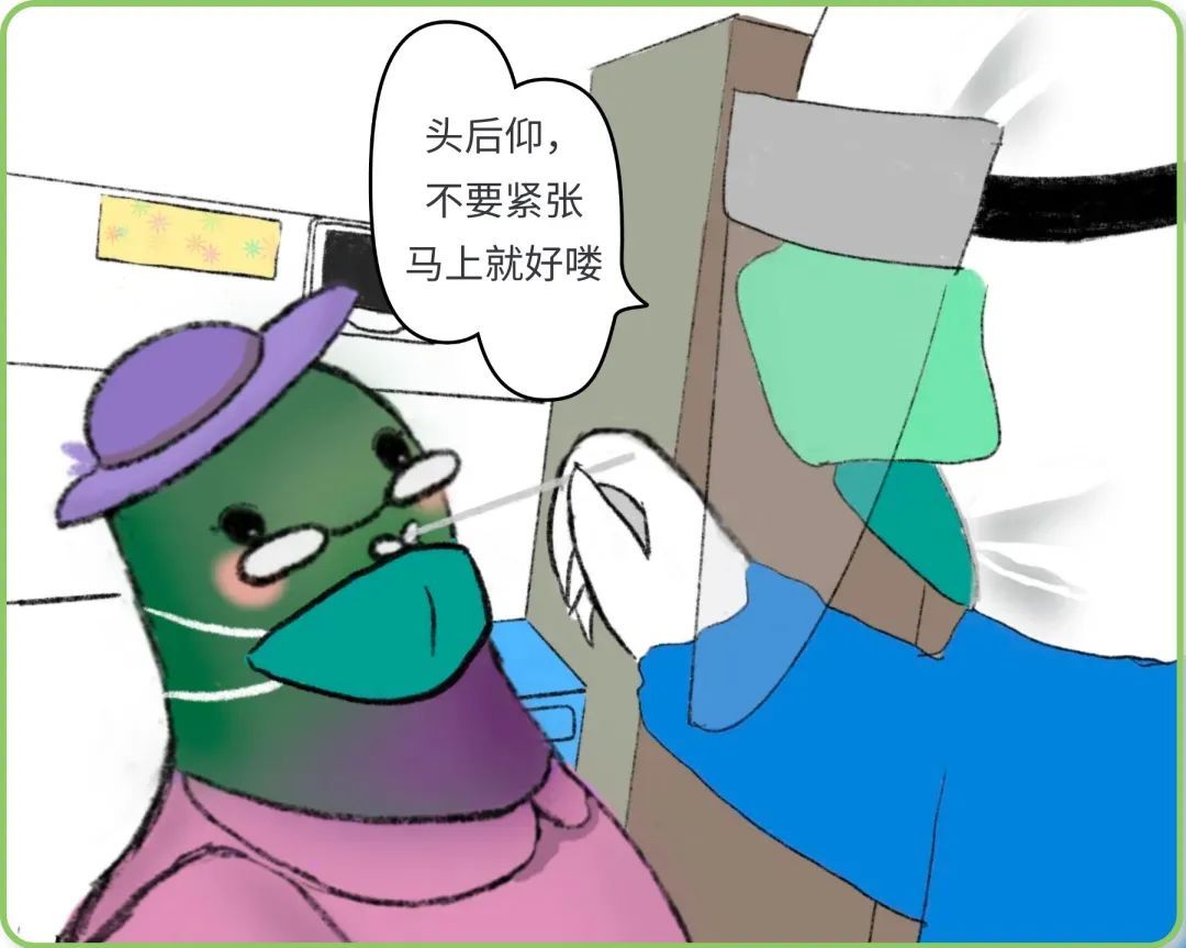 鼻咽拭子采集,下拉口罩露鼻孔,大白动作轻柔,马上就好喽...