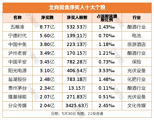 据21投资通智能监测,5月30日,北向资金净买入70.49亿元,其中沪股通净买入24.82亿元,深股通净买入45.67亿元。