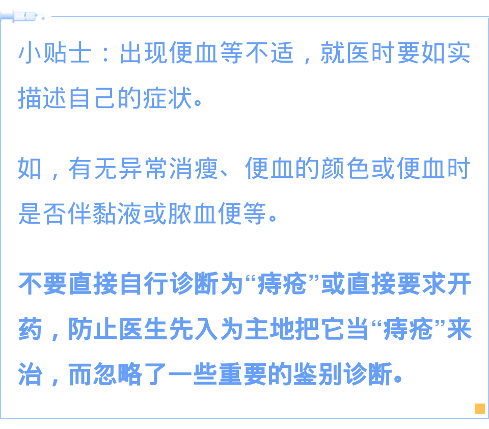 再加上“十人九痔”的观念深入人心,所以,一旦出现便血,大多数人会认为自己是患上了“痔疮”,也就不再去重视它。