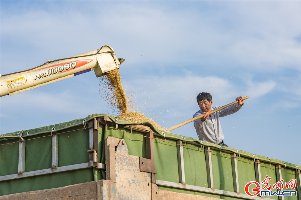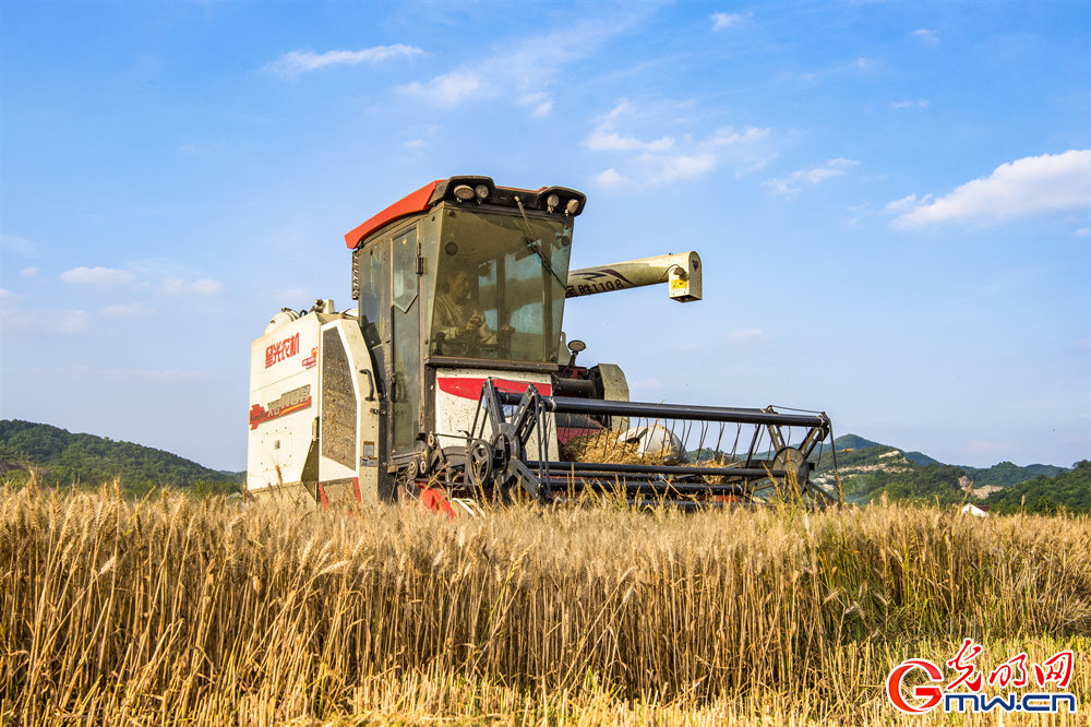 在安徽省芜湖市繁昌区孙村镇代亭村,农民正在收获小麦。(肖本祥 摄/光明图片)