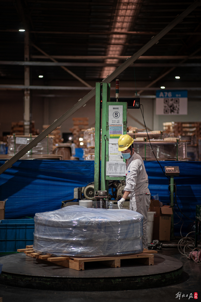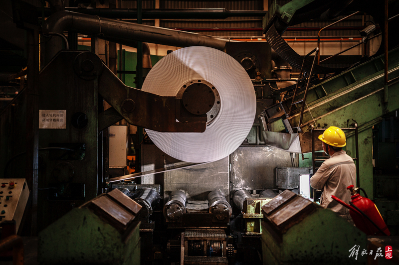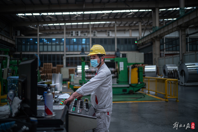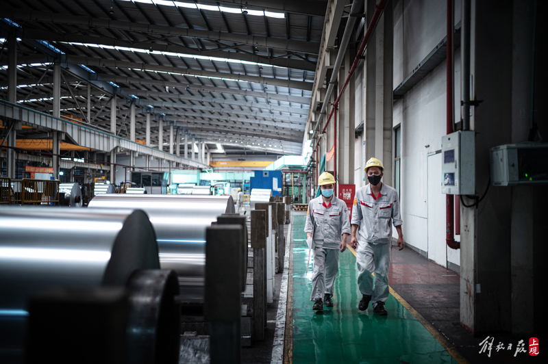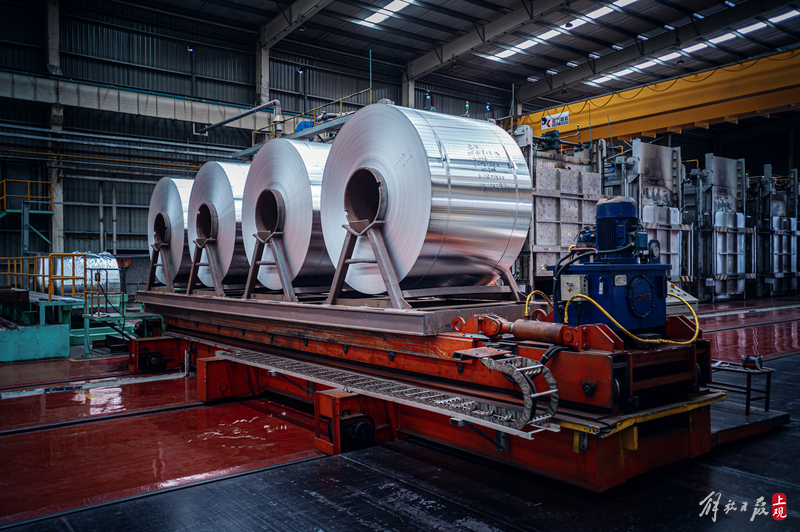 2022年6月7日,记者走访位于上海金山工业区的某上市铝业公司。该公司生产的各种规格、牌号的铝合金板带箔材料广泛应用于汽车、工程机械、电站和家用商用空调热交换系统,以及用于制作新能源汽车动力电池外壳,同时在民用领域例如餐具、旅行箱外壳等,其技术及产能在全国业内位居前列。