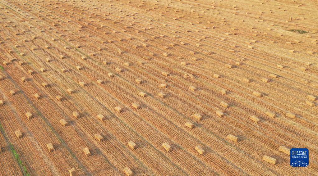 这是6月8日在河南省安阳市滑县小铺乡界河路村拍摄的打捆的麦秸(无人机照片)。新华社记者 张浩然 摄