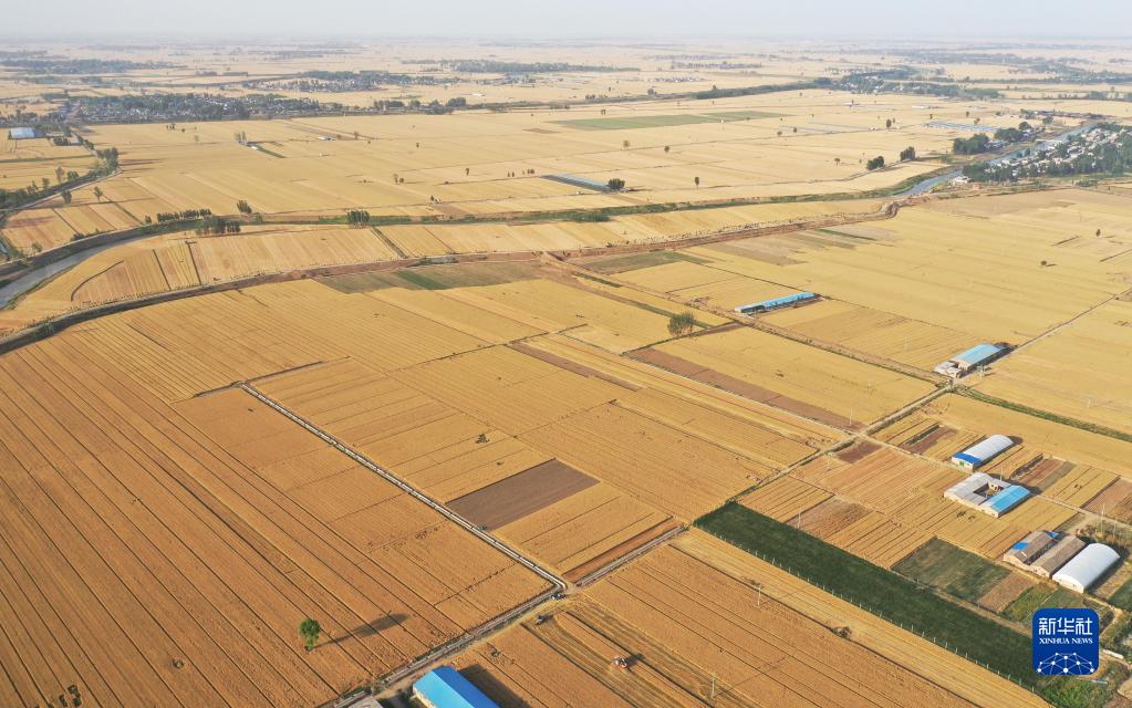 这是6月6日在河南省卫辉市上乐村镇拍摄的麦田(无人机照片)。新华社记者 张浩然 摄