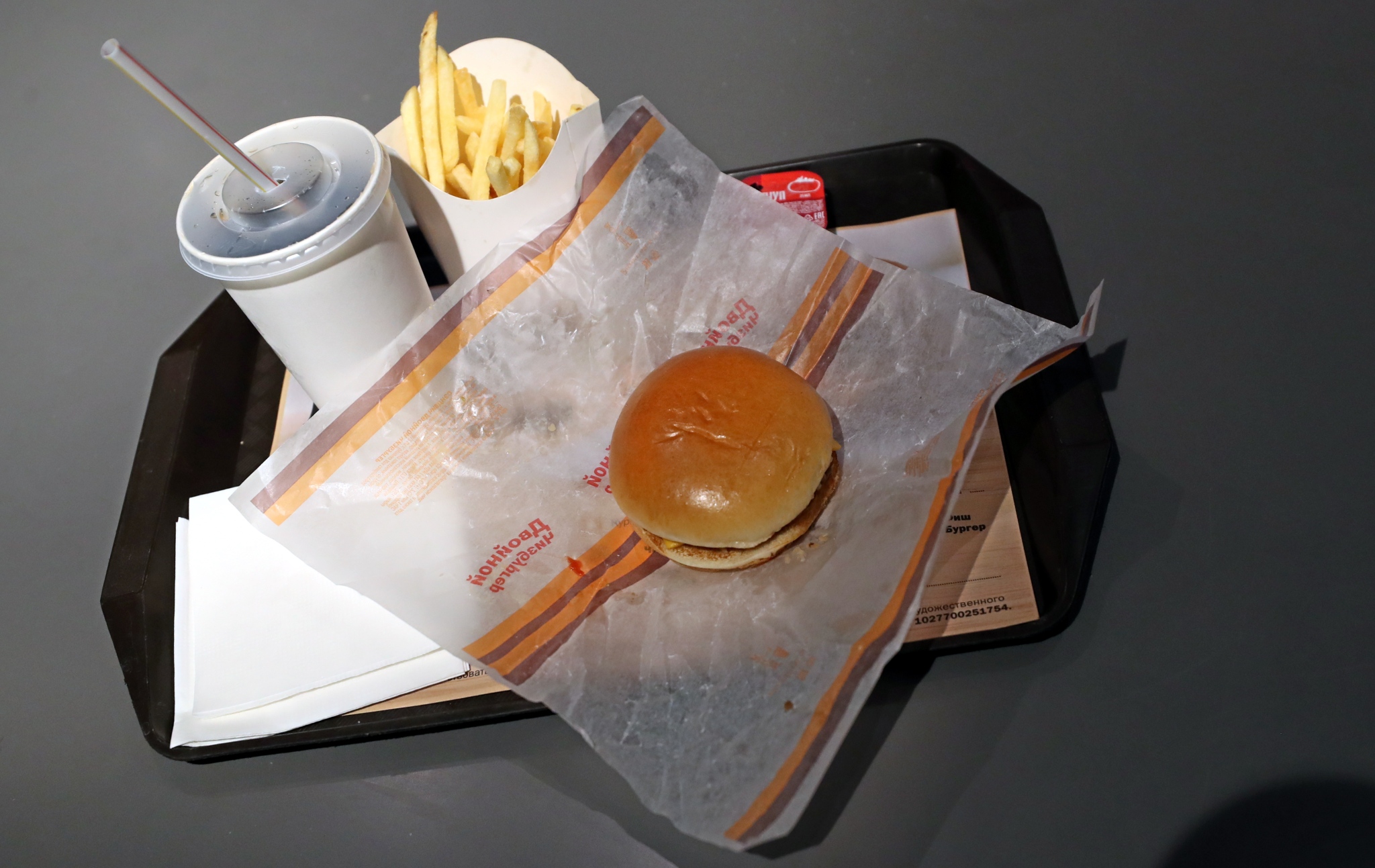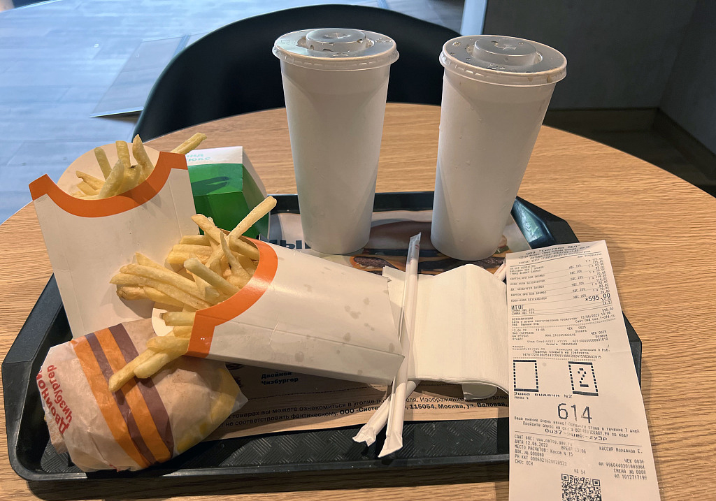 当地时间2022年6月12日,俄罗斯莫斯科,麦当劳改名为“就是这么好吃”重新开业,图为新餐厅的套餐。