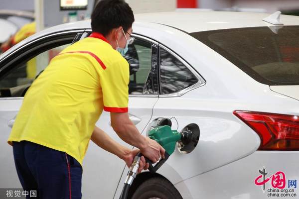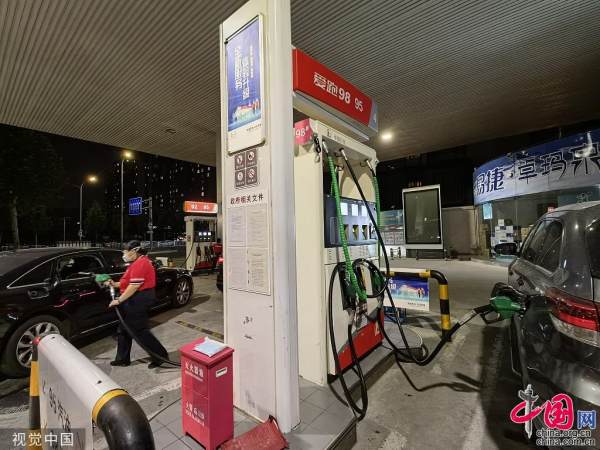 6月14日,汽车在北京一加油站加油。 图片作者:赵隽/视觉中国