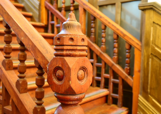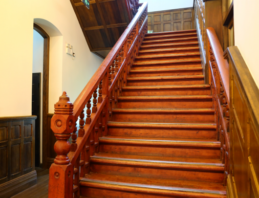 格致楼内的楼梯扶手还保持着当年的模样。到达顶层,秋天的阳光在地板上投下金灿灿的影子,钟声阵阵从不远处传来,那是毗邻格致楼的怀施楼上的大钟在提醒人们光阴的脚步。