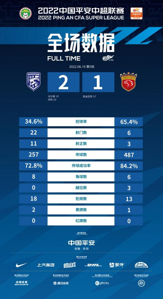 控球率方面,海港队以65%领先对方的35%,传球成功率以84%领先三镇的72%,但这是无效优势——海港队控球区域都在本方中后场,无法制造实质性进攻威胁;传球也是本方后场的三名后卫来回横传,难以向前发动有效进攻。