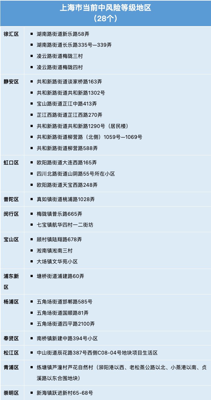 6月22日上海各区确诊病例、无症状感染者居住地和当前全市风险地区信息