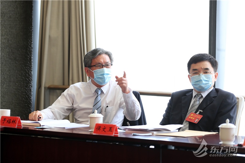 ▲于福林代表(图左)踊跃发言。(柏可林摄)