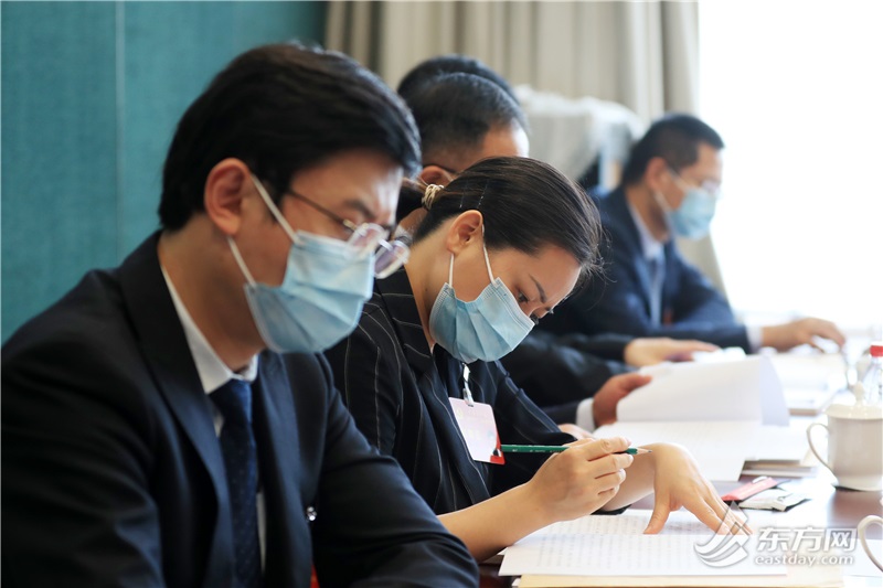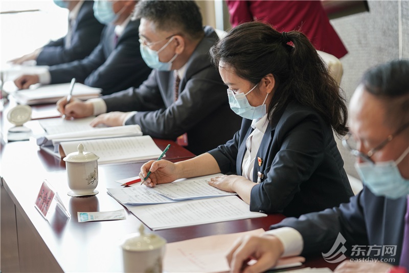▲奚红代表做会议记录。(柏可林摄)
