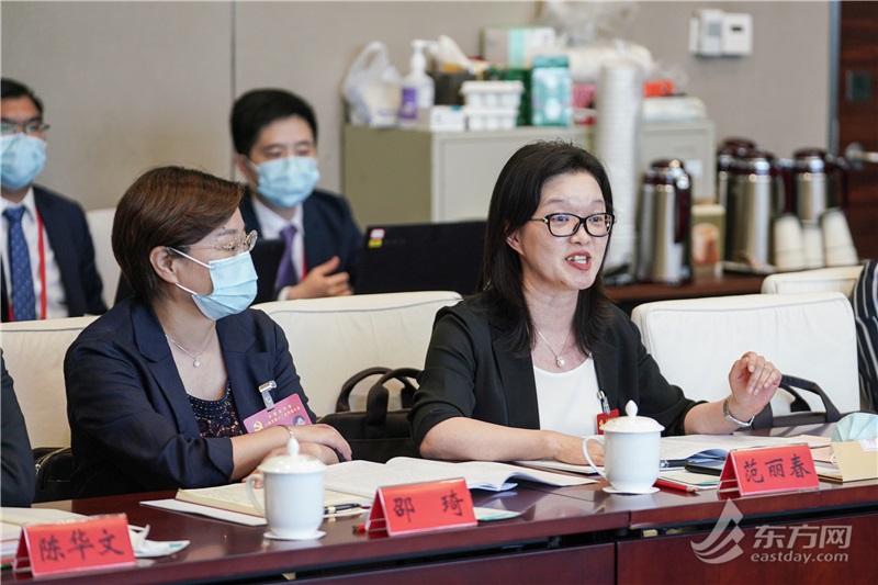 ▲范丽春代表(图右)发言。(汪伟秋摄)