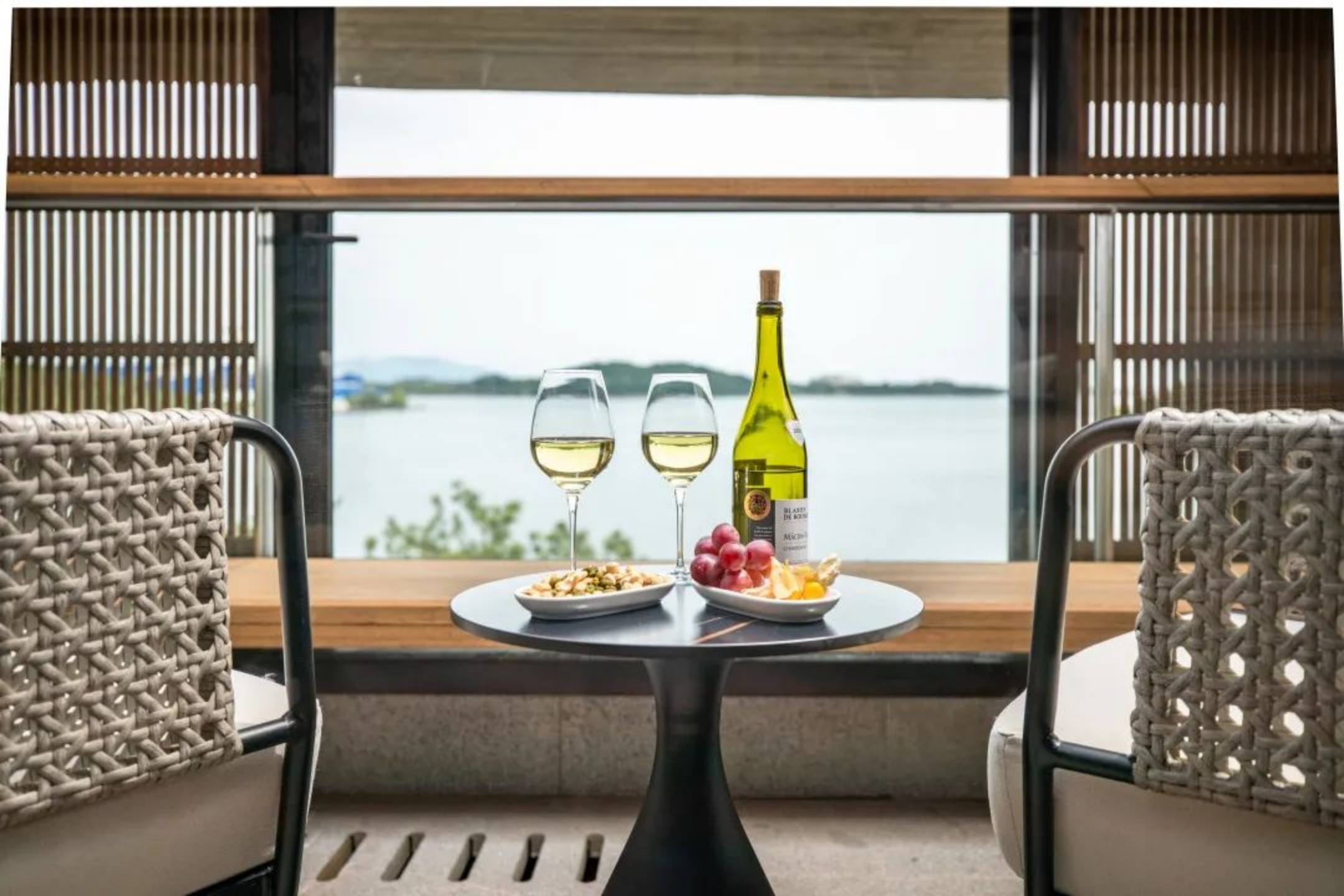 下榻雁栖湖畔旁的酒店,栖息于山湖之间。初夏午后的雁栖湖畔,微风拂面,眼前绿草如茵,远处山脉青葱。