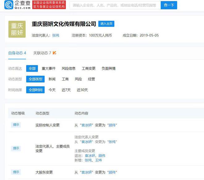 因此,国家税务总局重庆市税务局第七稽查局拟对重庆丽妍上述行为处应扣未扣、应收未收税款60%的罚款,即97.8万元。此外,7月3日,袁冰妍退出该公司法定代表人、执行董事兼经理职位,由张纯接任,大股东由袁冰妍变更为顾伟。