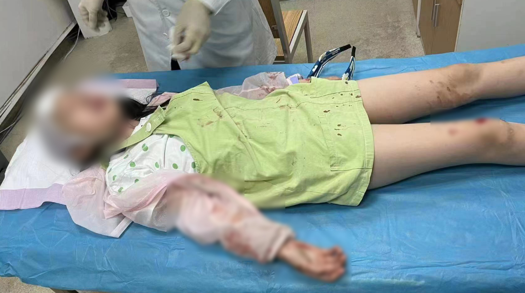 玉振彪注意到,裴女士女儿额头上有一道较深的伤口,女孩哇哇大哭,脸上夹杂着泪水和血迹。“快上车,”玉振彪立刻决定用警车将孩子送医。