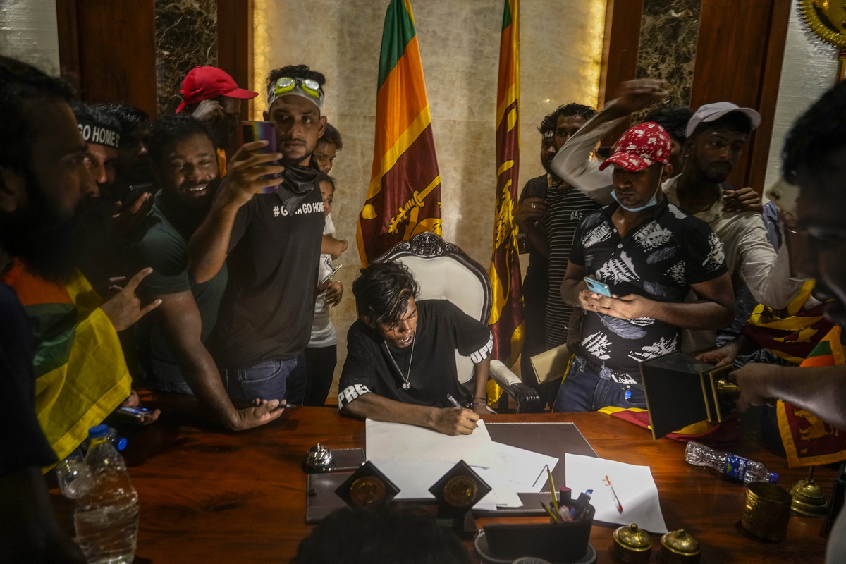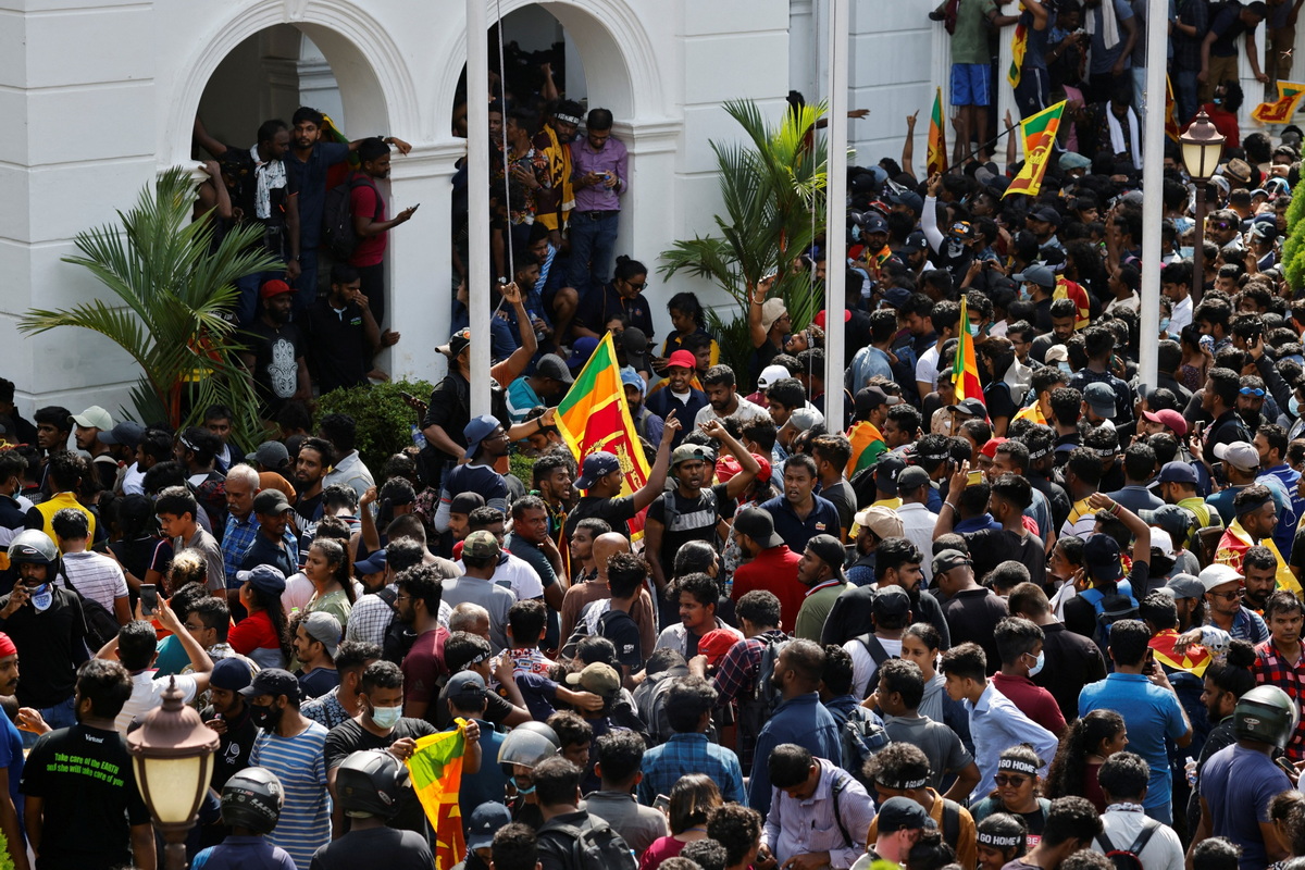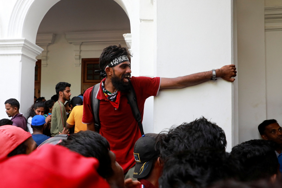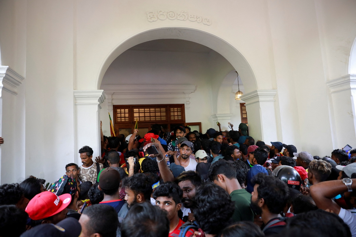 2022年7月13日,斯里兰卡科伦坡,示威者冲入总理办公室大楼。
