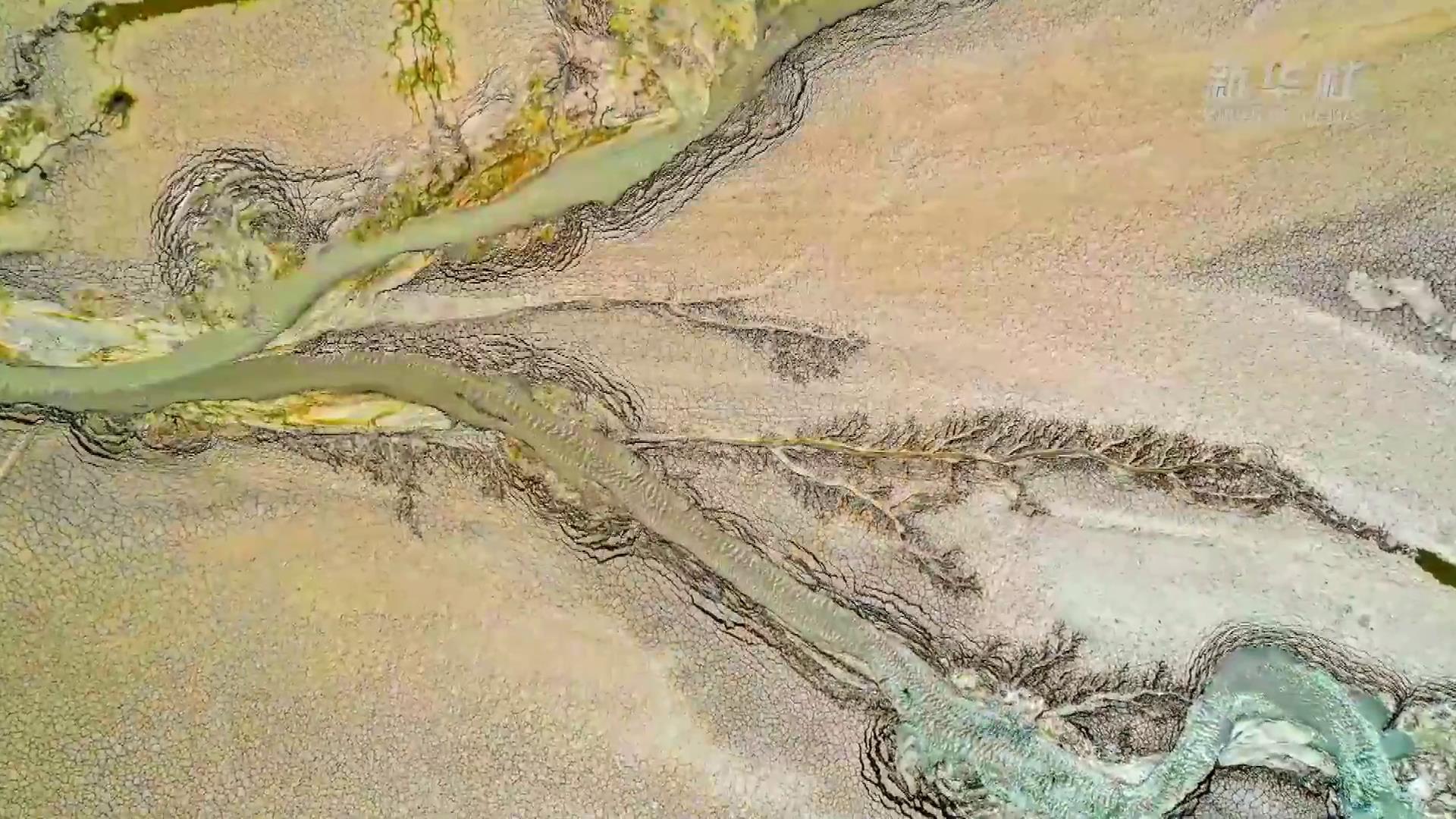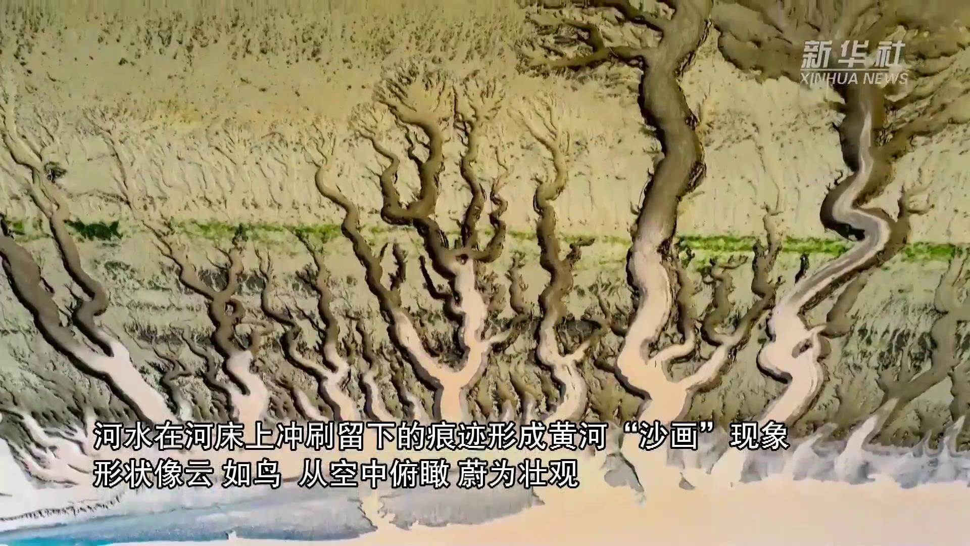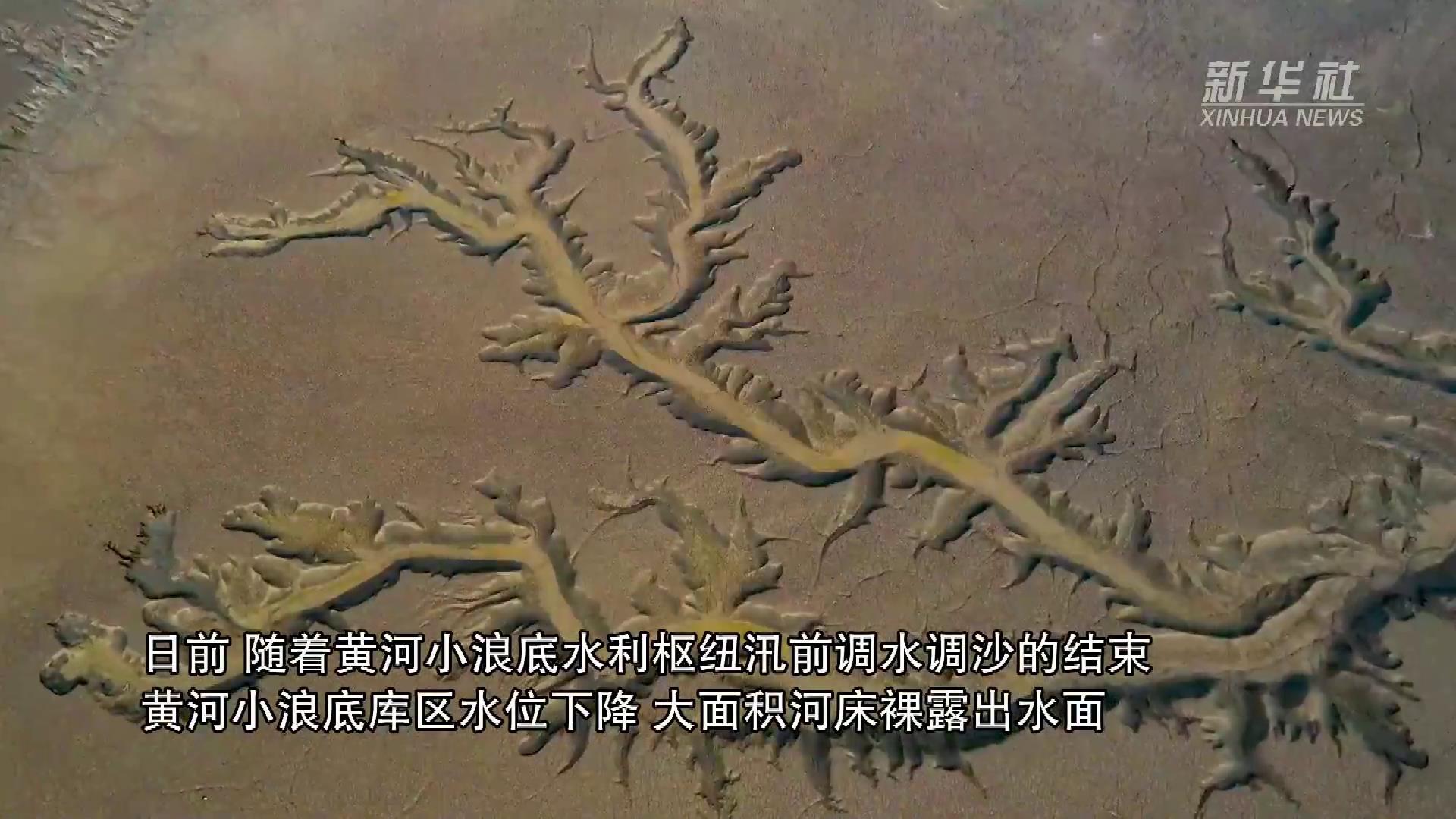 日前,随着黄河小浪底水利枢纽汛前调水调沙的结束,黄河小浪底库区水位下降,大面积河床裸露出水面,河水在河床上冲刷留下的痕迹形成黄河“沙画”现象,形状像云、如鸟,从空中俯瞰,蔚为壮观。