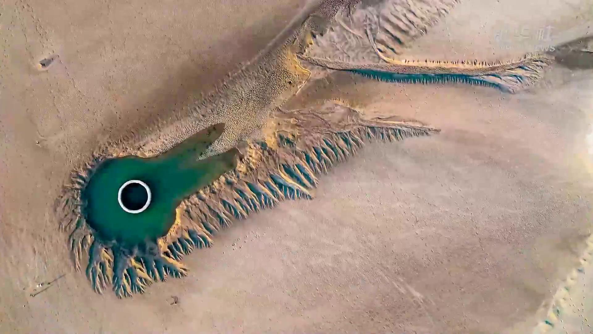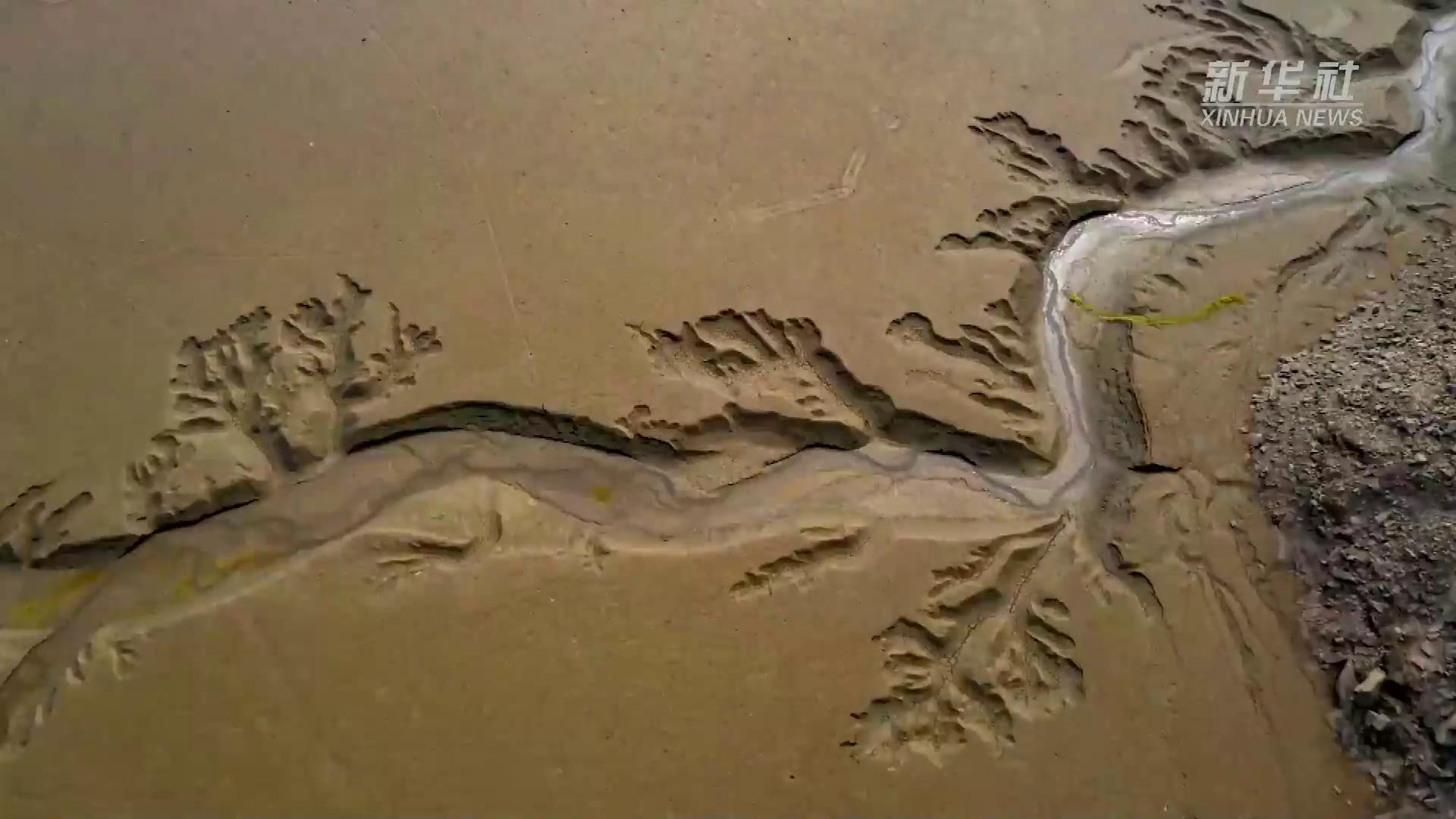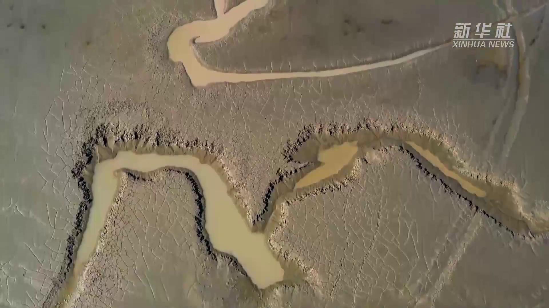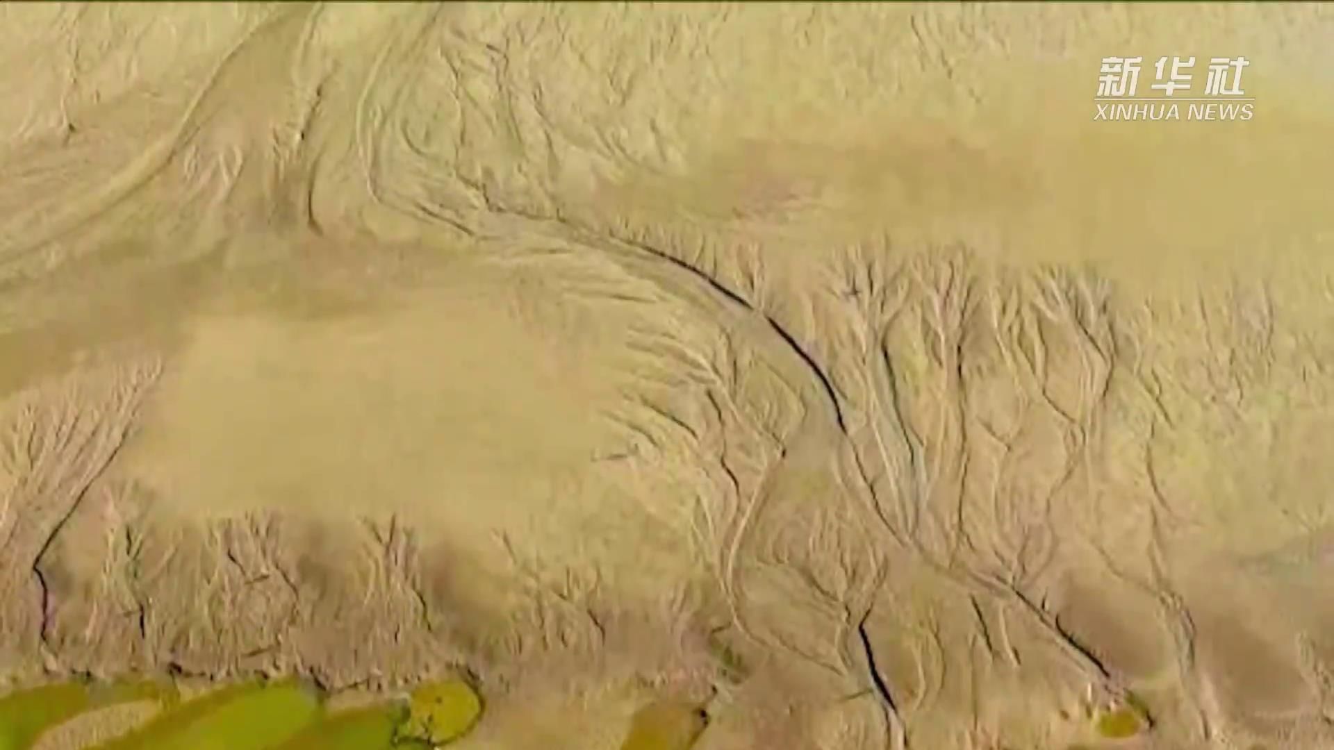 日前,随着黄河小浪底水利枢纽汛前调水调沙的结束,黄河小浪底库区水位下降,大面积河床裸露出水面,河水在河床上冲刷留下的痕迹形成黄河“沙画”现象,形状像云、如鸟,从空中俯瞰,蔚为壮观。