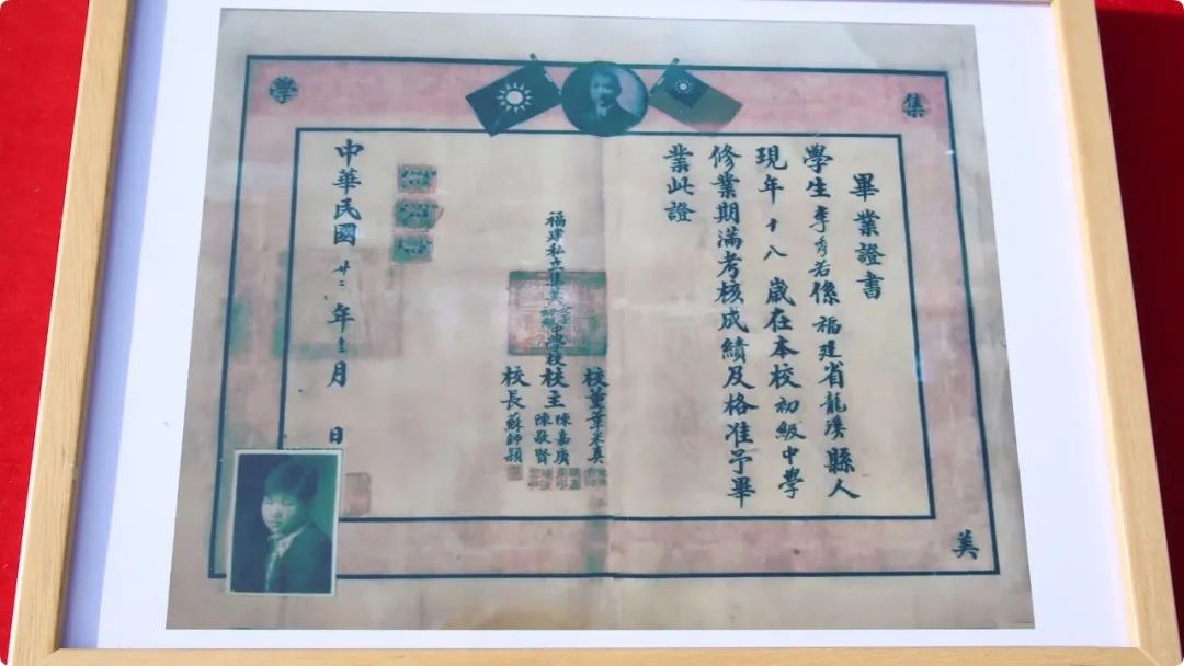 7月16日抗日女英雄李林烈士的亲属向福建省漳州市退役军人事务局捐赠李林革命烈士证明书和集美中学毕业证(复制品)