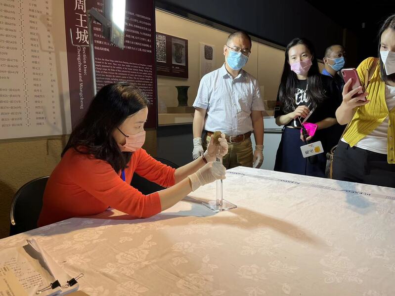 陈杰在检查妇好鸮尊