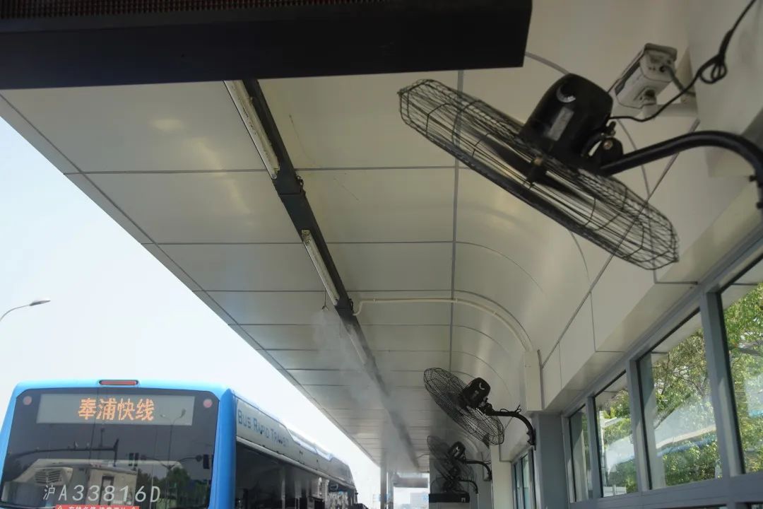 经常乘坐奉浦快线的乘客们一进入站点就发现了与往日的不同,纷纷拿出手机记录,高温之下,雾气环绕给乘客带来了舒适的候车体验,许多乘客也向小交表达了对公司贴心之举的感谢,后续公司将根据实际情况及市民的需求,在相应站点进行这方面的改造。