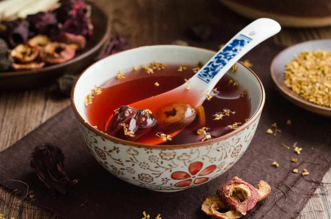 材料:干乌梅、山楂、桂花、甘草、冰糖适量