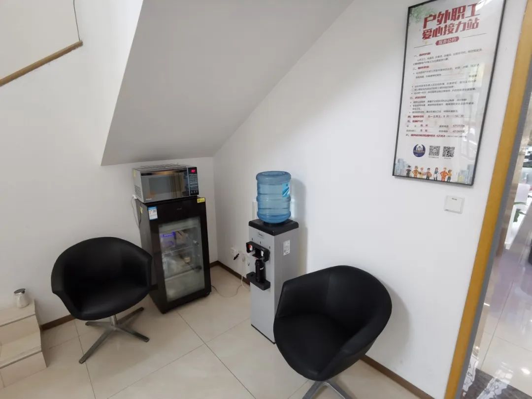 该站点位于古北路近长宁路的长宁区社会保障服务中心大厅内,站点提供空调、冰箱、桌椅、饮水机、微波炉、充电插排等基础设施,并配备了空气净化器、充电宝、共享雨伞、血压计、爱心医药包等升级设施。如需更多服务可咨询大厅内的工作人员。