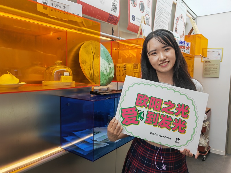 现在,“欧阳之光”成了来店必点,“欧阳路没有羊”挂耳咖啡是周边居民喜爱的“讨口彩”伴手礼;有着欧阳符号的文创产品,别致而有新意;还有由听障者设计制作的香薰蜡烛,摆在展示柜里显眼的位置。