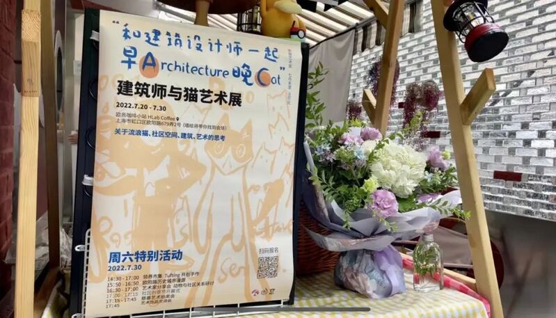 7月底,罗允儿策划了一场“建筑师与猫艺术展”,邀请了两位青年艺术家,在小站里办了一场以猫为主题的小型展览及慈善拍卖会。艺术展的背后,是社区流浪猫治理的议题。