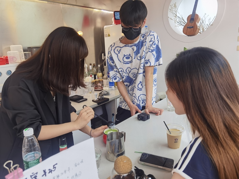 还有一位住在附近的老人,也是咖啡馆的粉丝。他最喜欢喝的是生椰乳拿铁,每次做核酸检测之前和买菜之后,都会到这里买一杯咖啡。然后,会给罗允儿等人讲他过去是一名工程师的故事。他是店里唯一使用现金交易的粉丝,也经常请教店里的年轻人如何使用智能手机。他打趣说,自己以前是最先进的工程师,现在是新时代里的学习者。