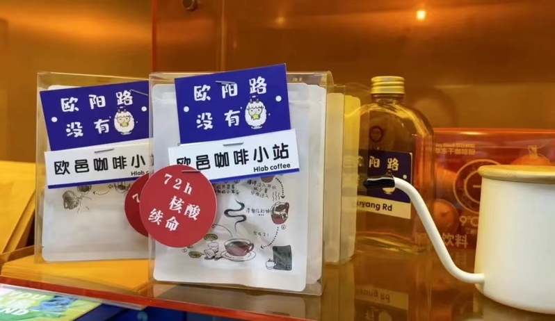 比如,有一款咖啡师调制的艺术特饮:“欧阳之光”。名字由光顾咖啡店的居民投票产生,选用南美咖啡豆,添加牛奶、薄荷,咖啡配上新绿,颜值很高,也有“保住绿码”的寓意。