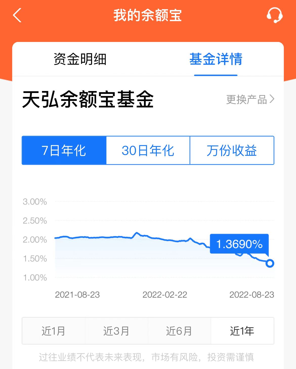 “一万元存在余额宝,每天收益不到0.4元!”自2022年以来,天弘余额宝货币市场基金收益率持续下滑。8月23日,天弘余额宝7日年化收益率报1.3690%,逐渐逼近2020年6月9日创下的历史低点。