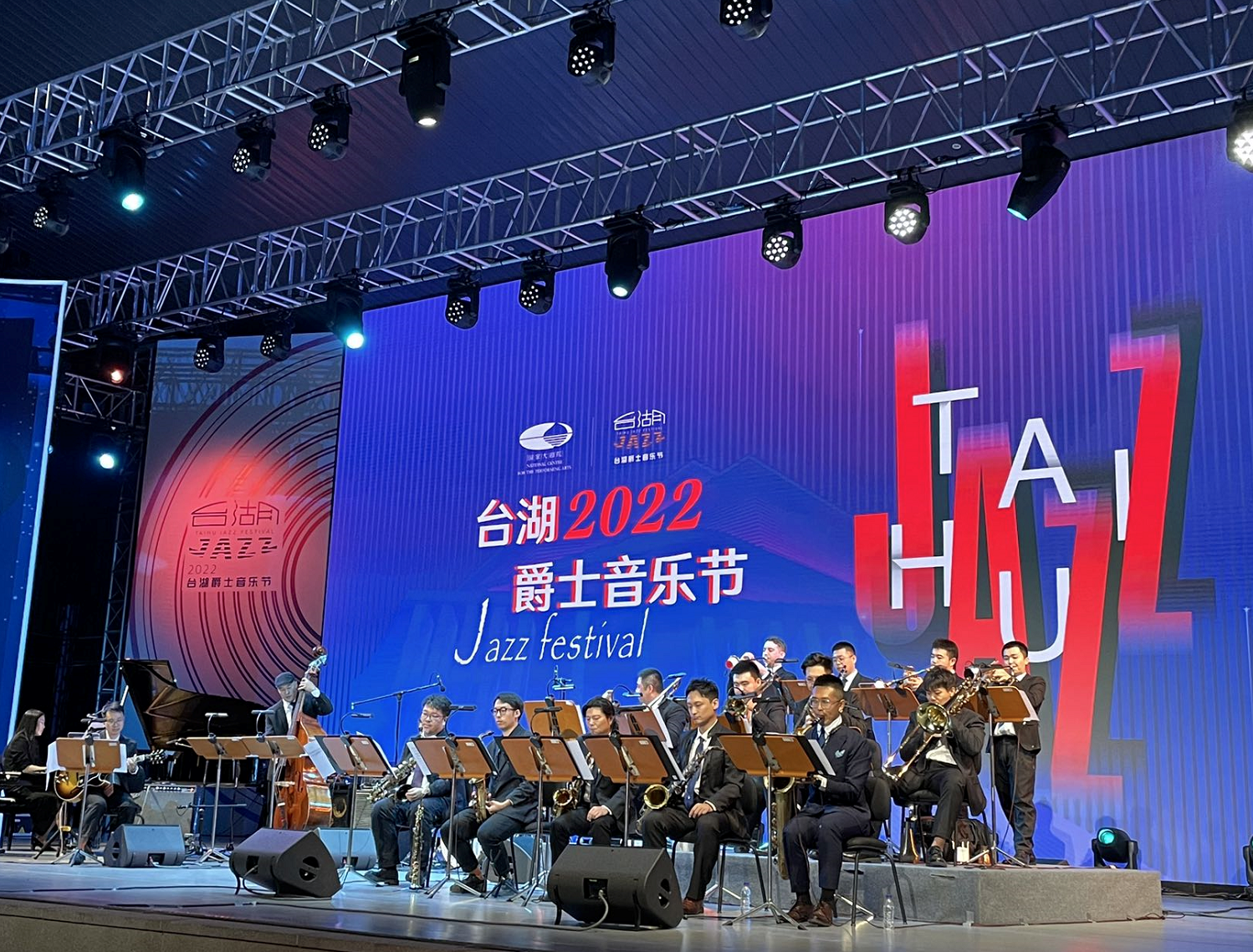 8月26日傍晚,伴随徐徐清风和飘逸的旋律,国家大剧院2022台湖爵士音乐节在户外露天剧场开演。当晚的音乐会上,Blue Note China爵士大乐队、中欧爵士明星荟萃乐队轮番登台,为观众奉献了一场国际性与中国风交融的爵士乐盛宴。