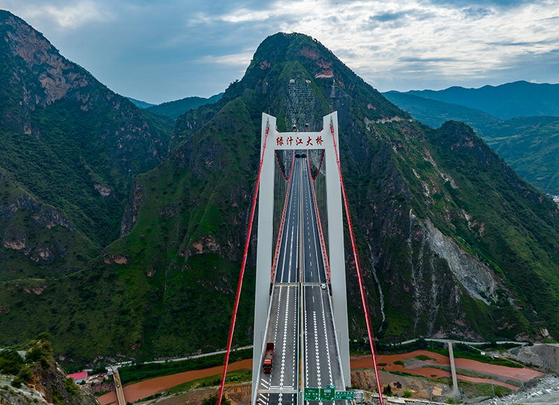 由中铁大桥局承建的玉楚高速绿汁江大桥(8月25日摄,无人机全景照片)。新华社记者 江文耀 摄