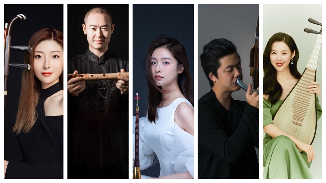 《敦煌五乐神》以《三国演义》中的五个历史人物为原型——用奚琴的沧桑表现赵云的仁,用尺八的空灵表现关羽的义,用筚篥的高亢表现张飞的勇,用笙的柔和表现黄忠的忠,用琵琶的节奏感表现马超的威……在湮灭的历史英雄与濒临失传的敦煌乐器之间建立气质的传承、精神的回响。